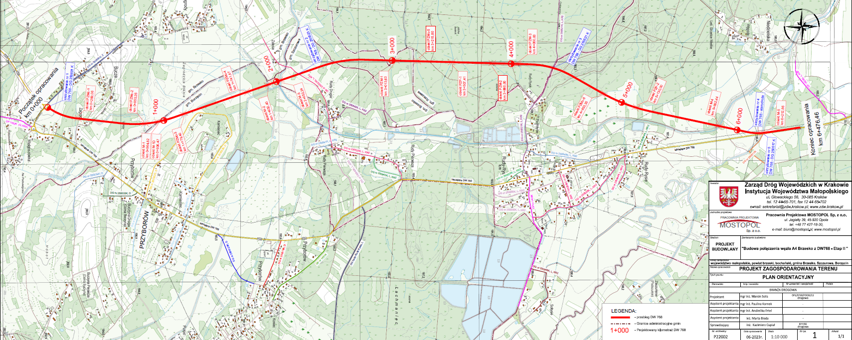 Przedmiotem inwestcji jest wykonanie połączenia drogowego węzła autostradowego autostrady A4 BRZESKO z drogą wojewódzką nr 768 w zakresie etapu II obejmującego budowę nowego odcinka drogi wojewódzkiej klasy G o długości ok. 6,47 km od skrzyżowania istniejącego odcinka drogi wojewódzkiej nr 768 i ul. Zagrodzkiej w m. Bucze (wlotu wybudowanego ronda) do włączenia do istniejącego odcinka drogi wojewódzkiej nr 768 (odc. 090 km 0+400,00). Zakres prac po stronie Sarivo Infrastruktura Sp. z o.o. obejmuje wykonanie frezowania nawierzchni, ułożenie podubudowy z kruszywa oraz ułozenie nawierzchni mineralno-asfaltowej.